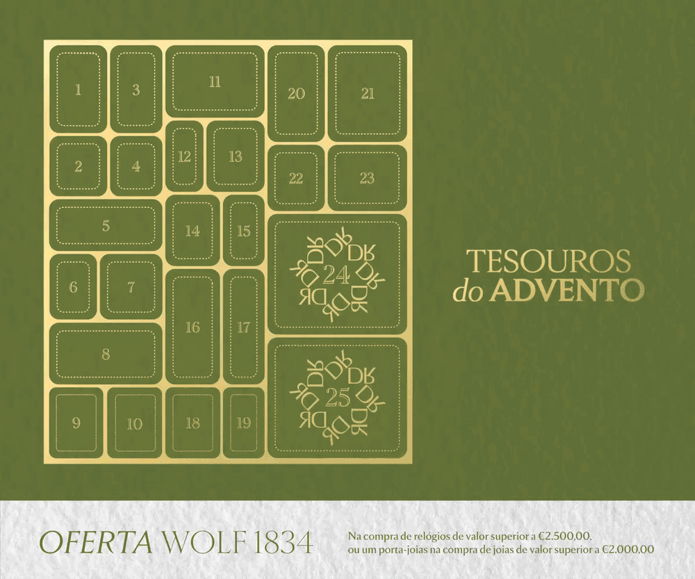 A cada dia, um tesouro é revelado: joias e relógios de excelência, cuidadosamente escolhidos para esta época festiva.