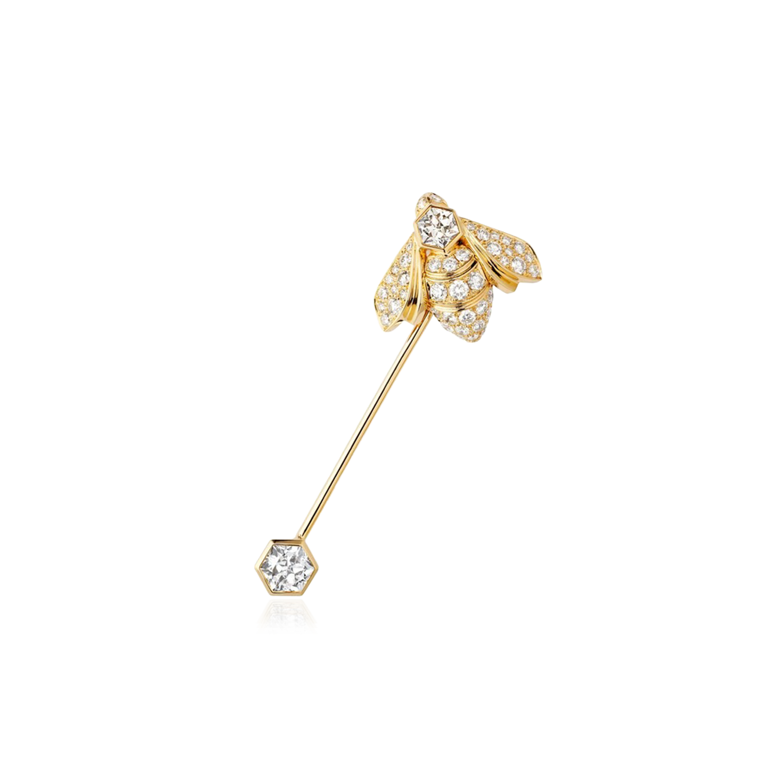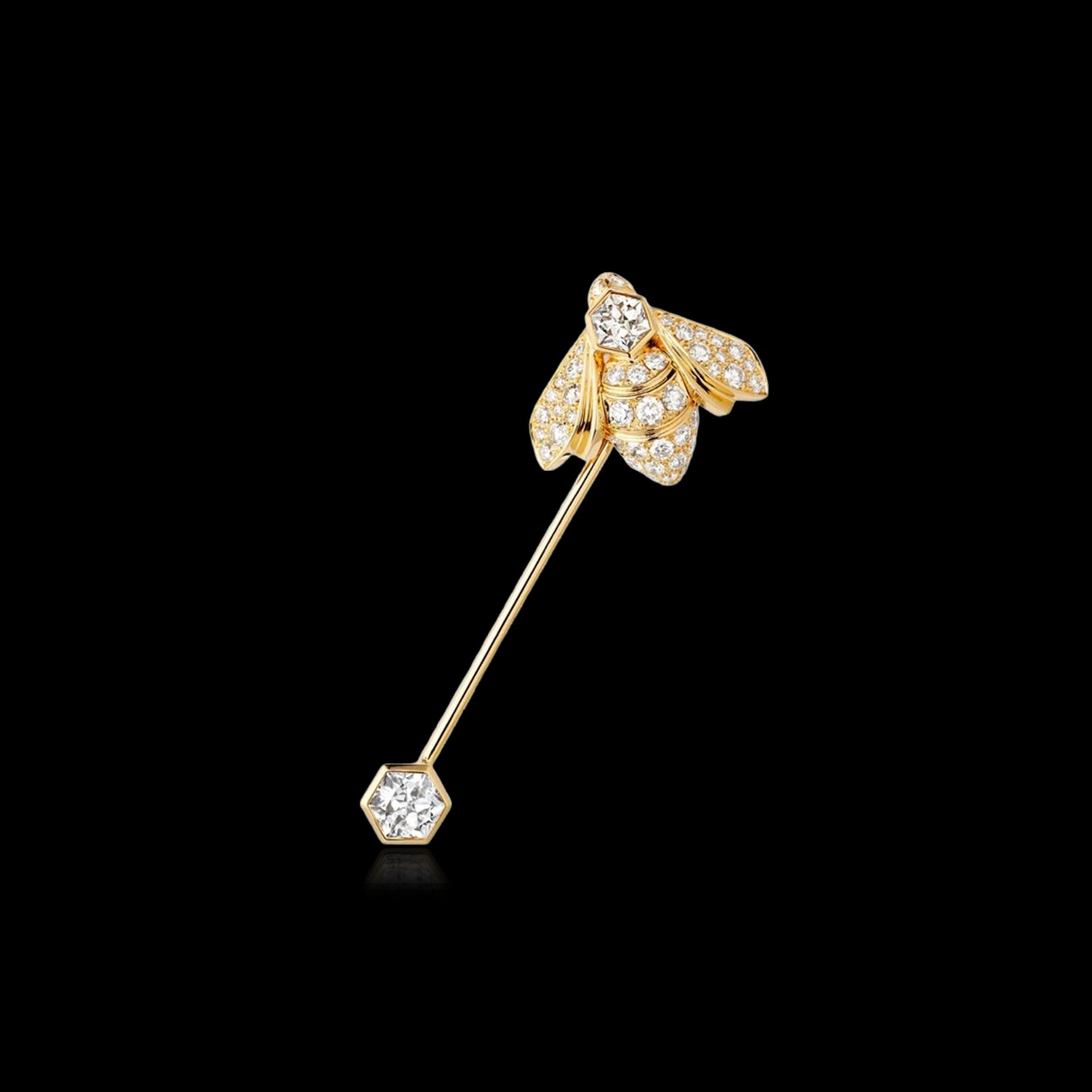 Alfinete Bee de Chaumet em ouro amarelo com dois diamantes exclusivos Chaumet em talhe hexagonal de 88 facetas e diamantes em talhe brilhante.