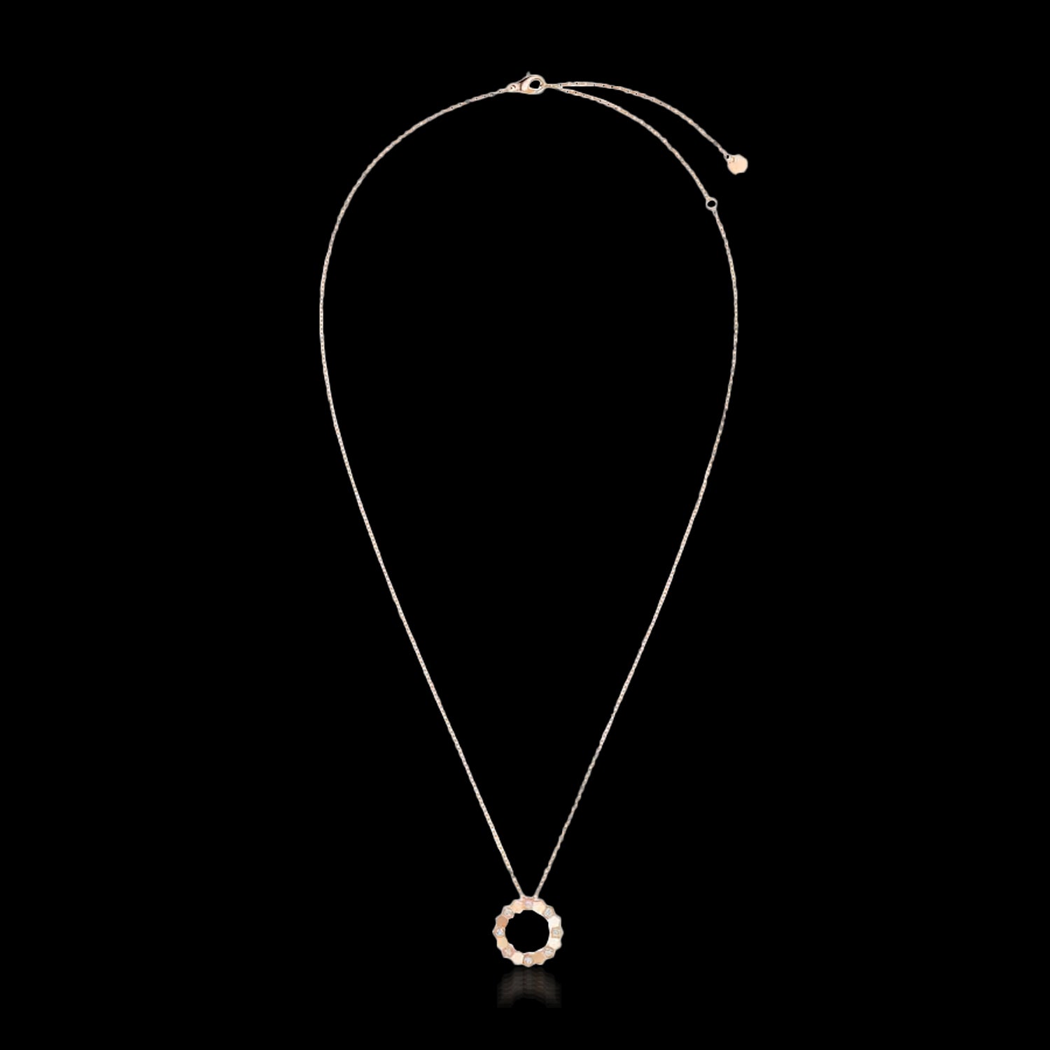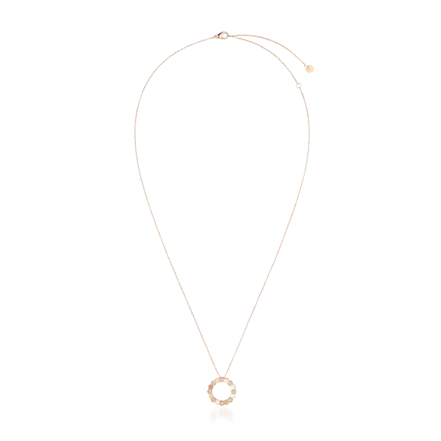 Fio com Pendente Bee de Chaumet modelo pequeno em ouro rosa com pavé de diamantes em talhe brilhante.