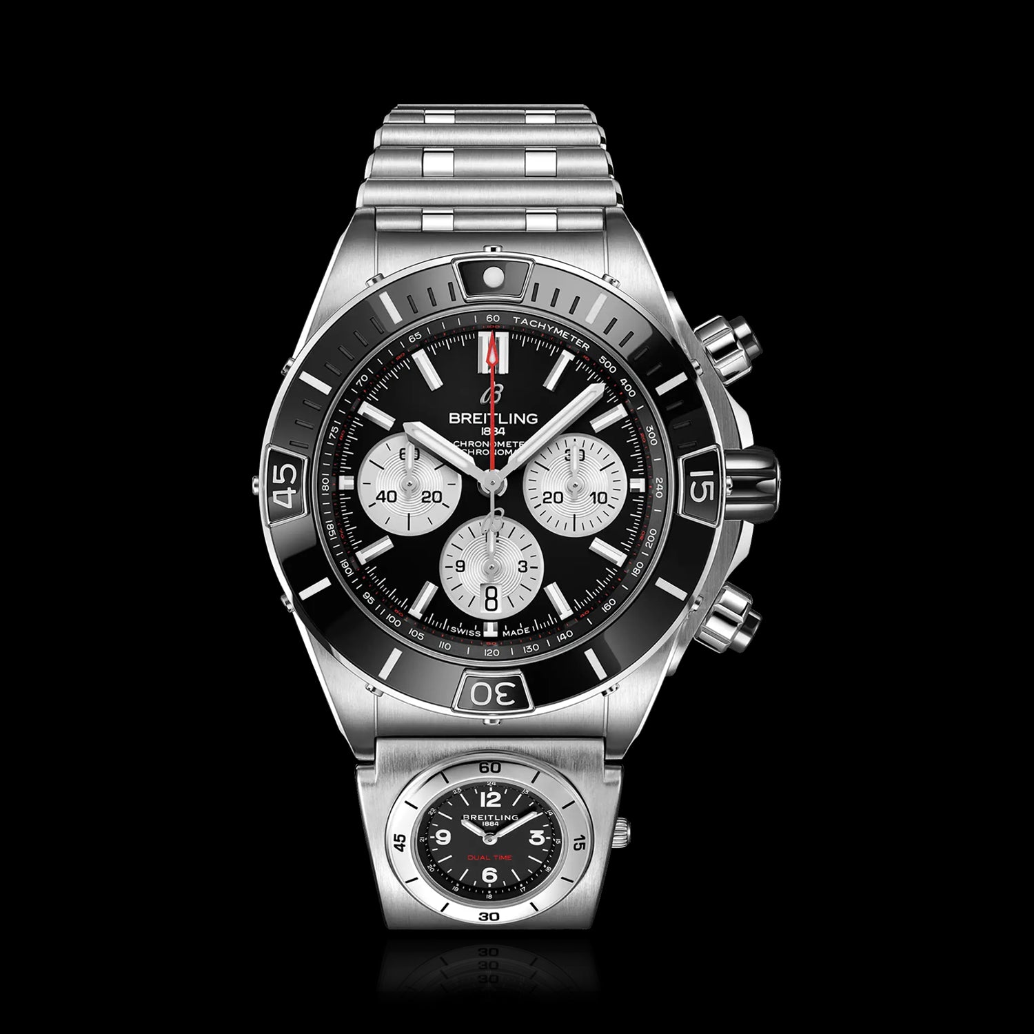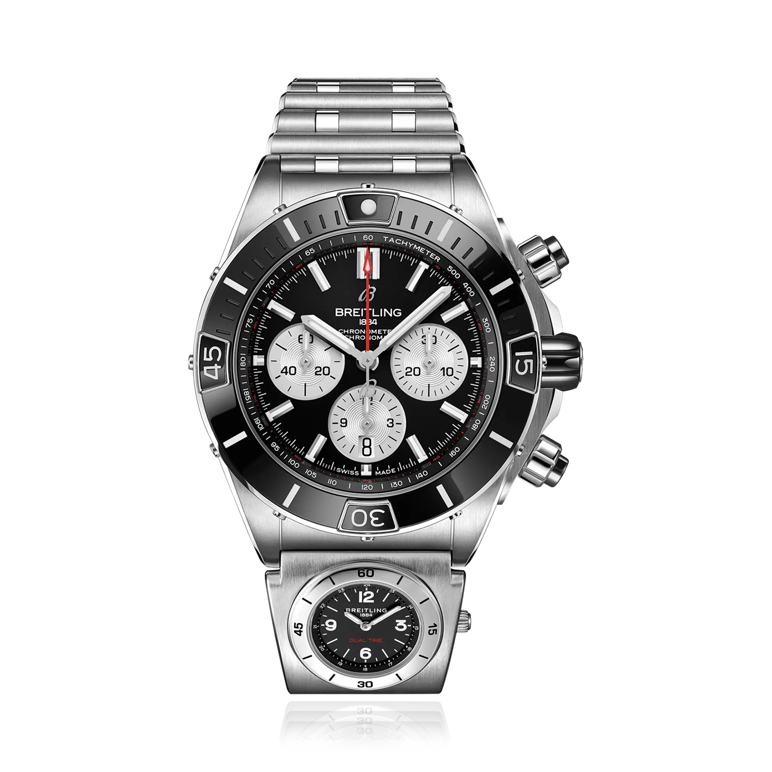 O poderoso relógio da Breitling para todas as suas missões. O Super Chronomat é inspirado no Chronomat original da década de 1980, que a Breitling criou para as estrelas das equipas de voo acrobático.