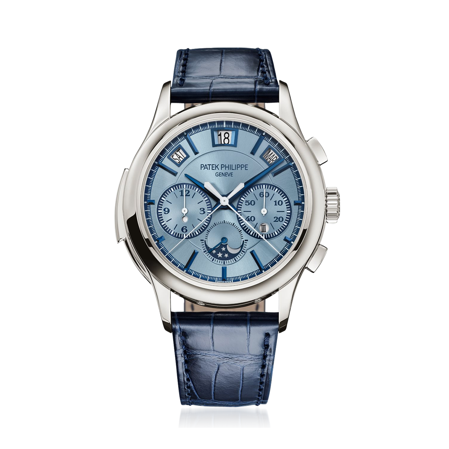Diâmetro: 32 mm. Espessura: 12,28 mm. Número de peças: 799. Número de rubis: 67. Reserva de marcha com o cronógrafo desativado: mín. 38 horas - max. 48 horas. Rotor de corda: mini-rotor descentrado em platina. Gyromax®. Frequência: 21.600 semi-oscilações/hora (3 Hz). Mola de balanço: Spiromax®. Sinal distintivo: Selo Patek Philippe.