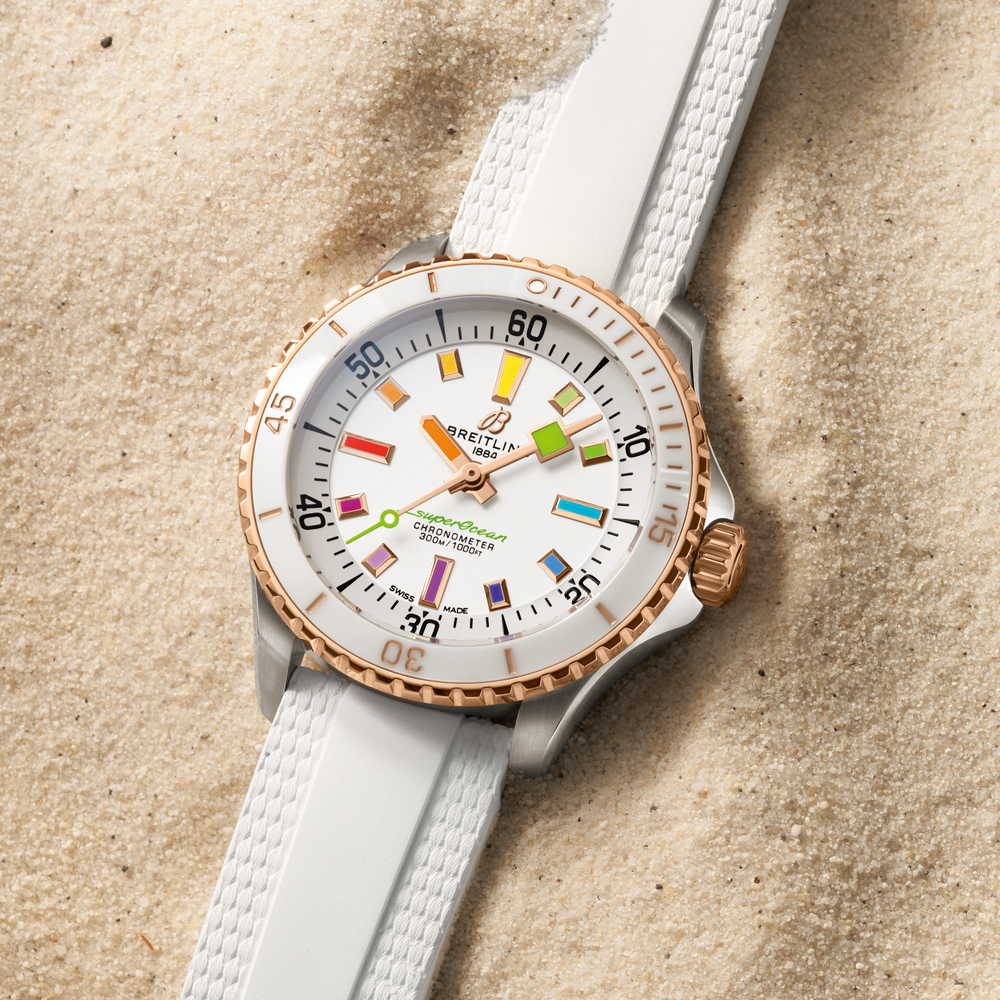 Fundada em 1884, a Breitling é um dos principais fabricantes de relógios suíços, reconhecida pela inovação e pelo legado na criação do cronógrafo moderno e de relógios profissionais de navegação. A marca continua a liderar como uma referência em luxo sustentável, com um estilo descontraído e inclusivo.