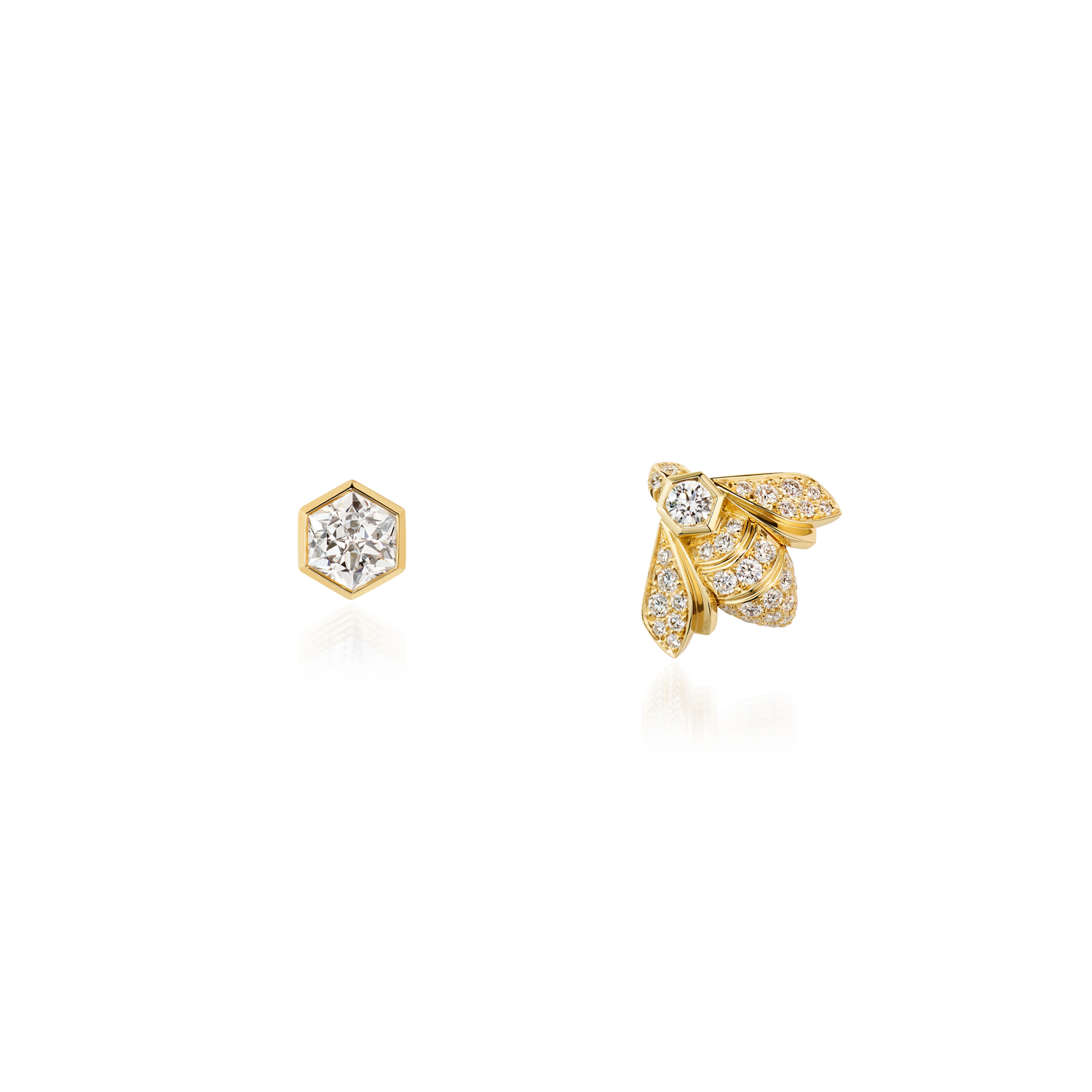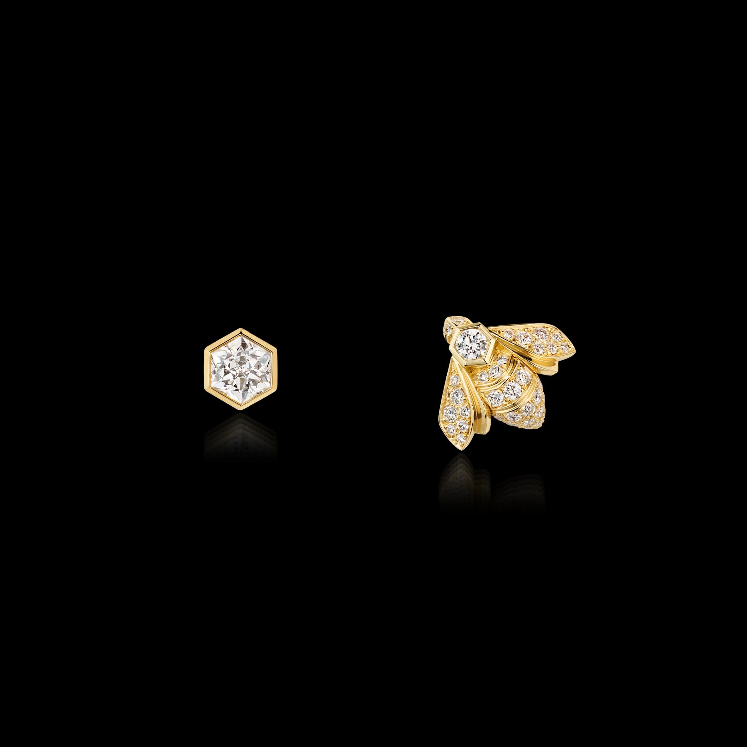 Brincos Bee de Chaumet em ouro amarelo, com um diamante exclusivo Chaumet de 88 facetas com talhe hexagonal e diamantes em talhe brilhante.